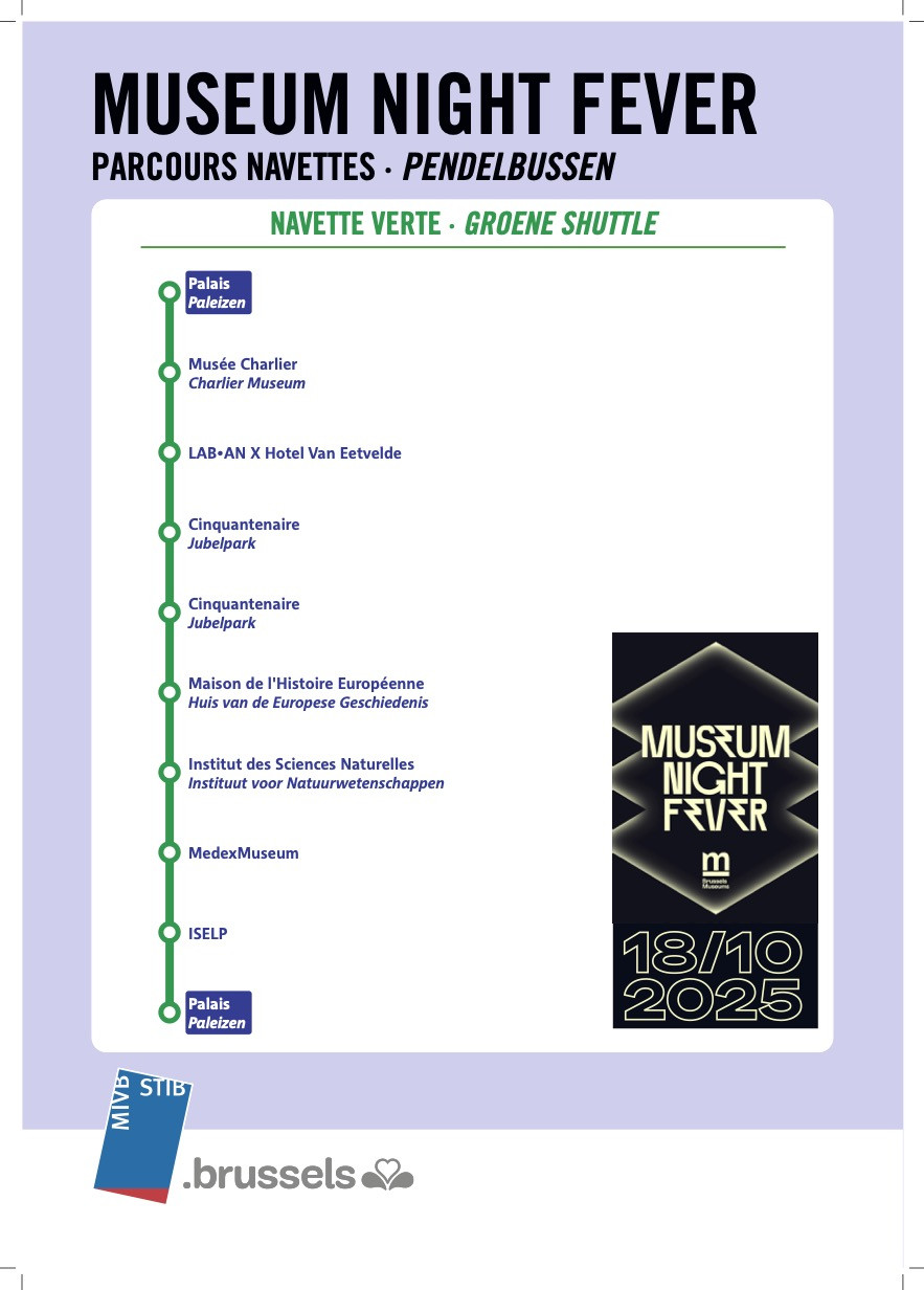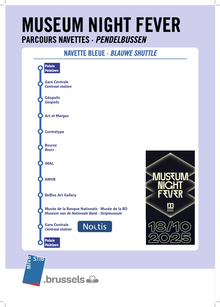 Met je MNF-polsbandje krijg je toegang tot de MIVB-pendelbussen die de verschillende musea met elkaar verbinden en tot het Noctis-busnetwerk.